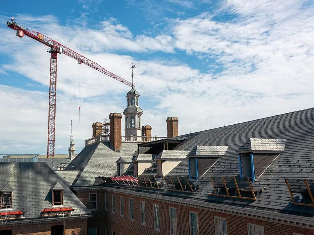 The Durable Slate Company was contracted to install new flashing and reclaimed slate on four newly built dormers, as well as install new apron flashing for each of the original dormers.