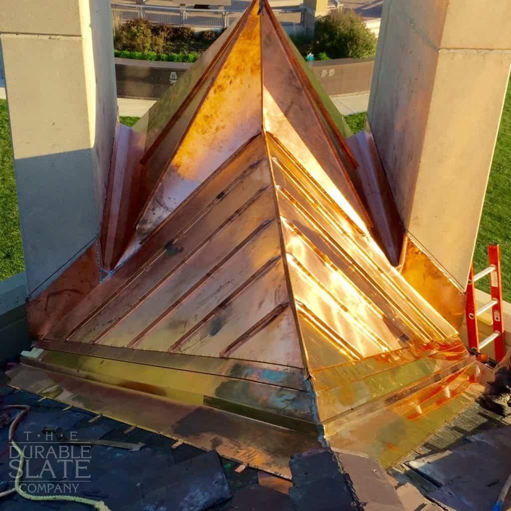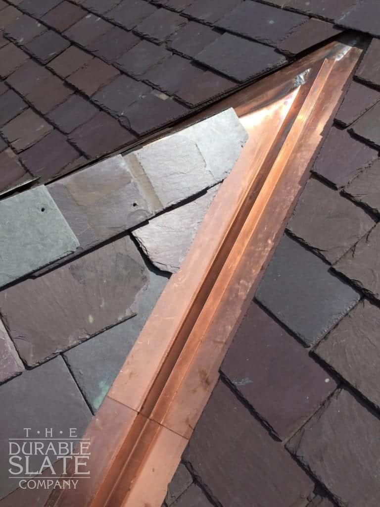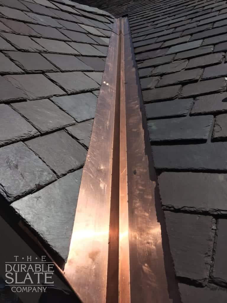 To resolve these issues, The Durable Slate Company replaced hundreds of slates across the roof and installed new copper valleys, as well as magnificent new standing seams roofs and flashings.