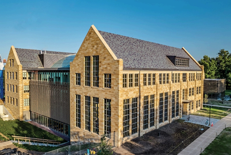 This project involved working in conjunction with Kalkreuth Roof and Sheet Metal to install a new roofing system on the newly constructed Chalmers Library. Durable Slate installed a blended Vermont slate roofing system with new copper flashings, and custom copper roofing.