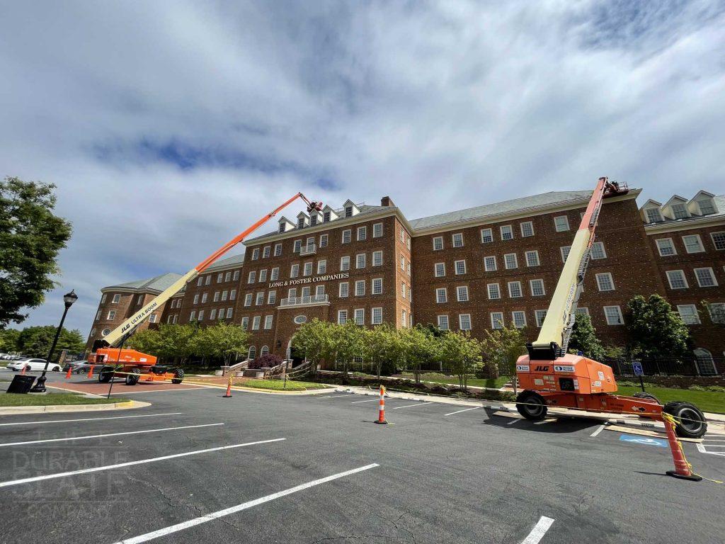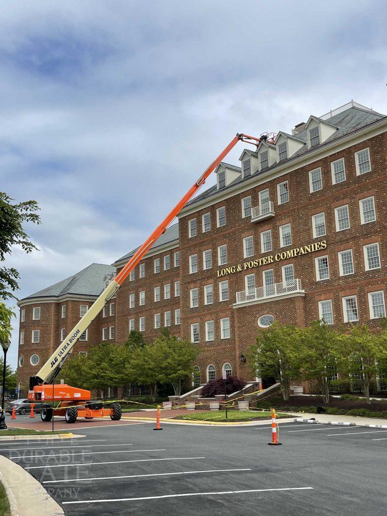 For this project, our crew performed a slate repair throughout the main roof and garage with the help of a 120’ man lift. In total, we removed hundreds of slates, installed a snow rail system, and reinstalled each slate.