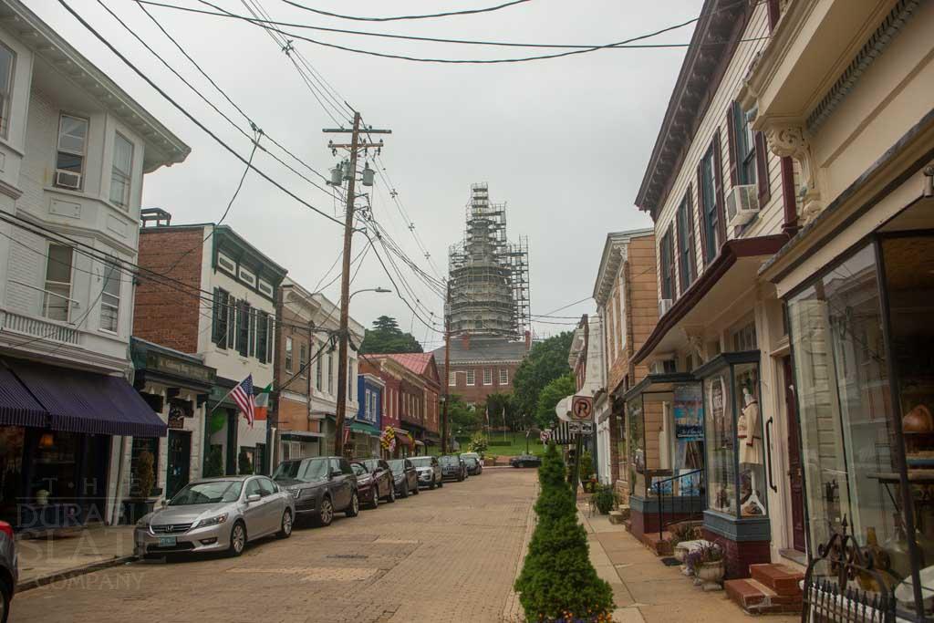 For this project, our crews will be installing North Country black slate and copper flashings on 4 different levels of the tower, including the lower sweep, dome, upper sweep, and upper lantern dome. In addition, new cypress shingles on the upper drum and lower lantern, new metal roofs at the balcony and at the plinth, and new metal architrave flashings at the windows and the balustrade railings will be installed.