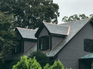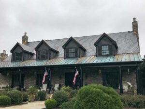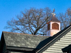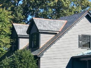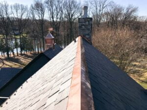 A recent roofing project in Annapolis, MD, involved replacing a wood roof with a new slate roof that was lightweight enough to support the structure. We used Slate Shield by Newmont Slate and added all copper flashings for a sleek and elegant finish.